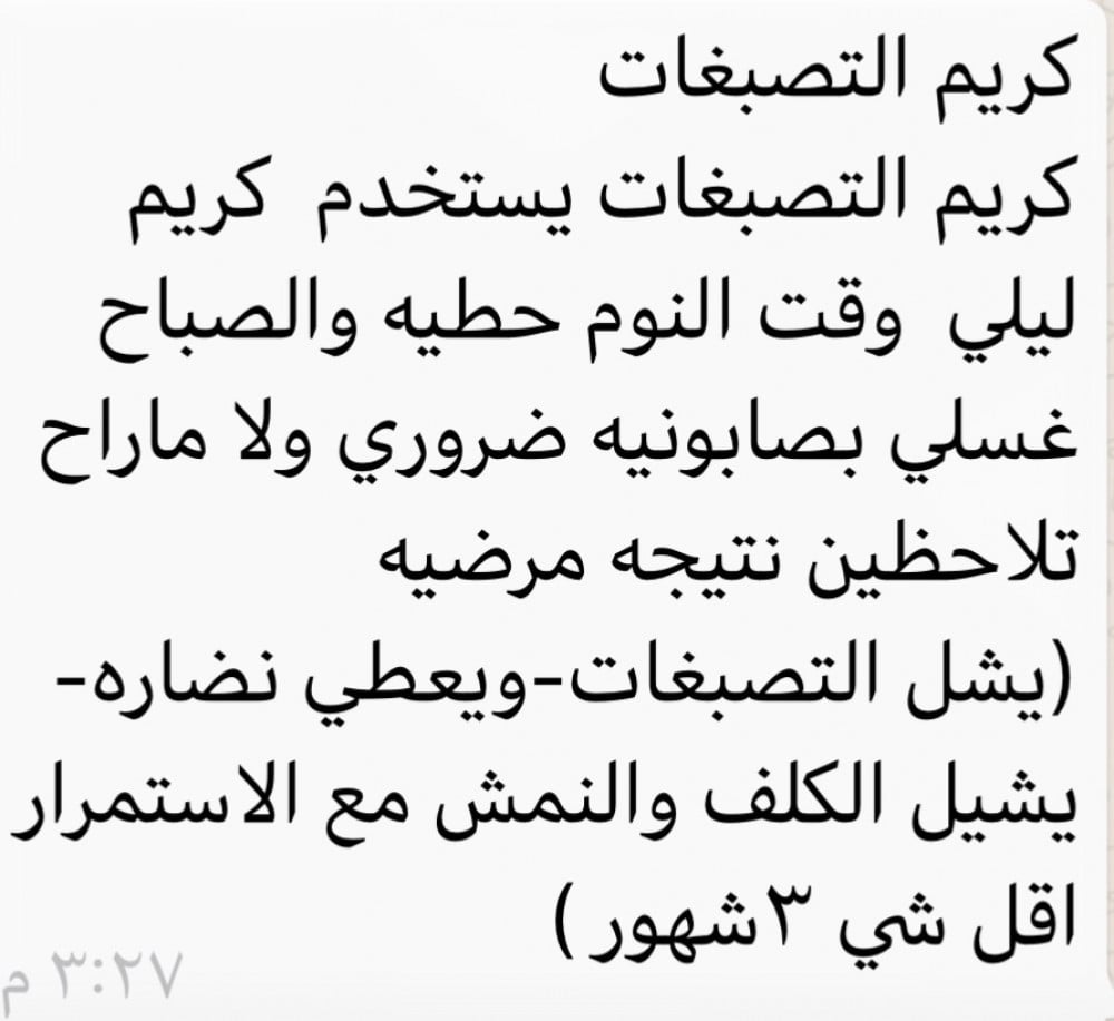 ● يوضع في الصباح واقي الشمس لتجنب تعرضها للتصبغات.